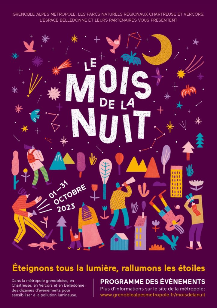 - Du 1er au 31 octobre 2023 – Une cinquantaine d’animations sur tous les territoires autour du thème de la nuit, de sa faune et du ciel étoilé. Et en Belledonne :
